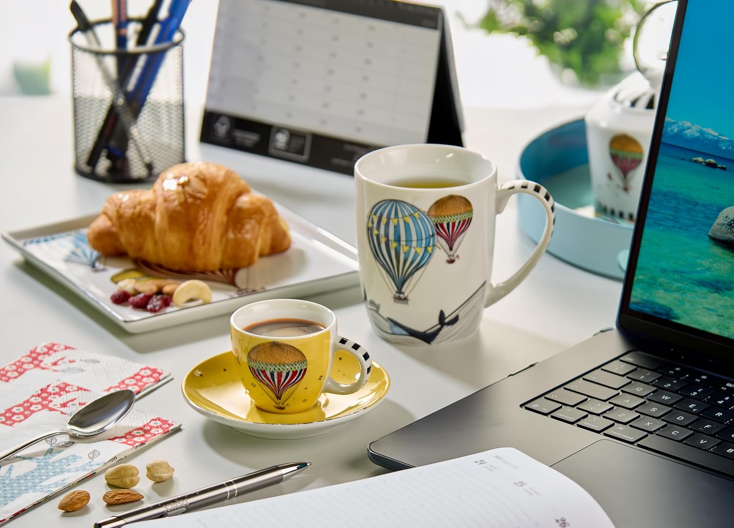 - تصميم جيراموندو على الطراز الإيطالي: عمل فني حالم لمنطاد الهواء الساخن مع تفاصيل مقبض مخططة يضيف لمسة زخرفية مستوحاة من السفر إلى ركن القهوة ورف المطبخ.