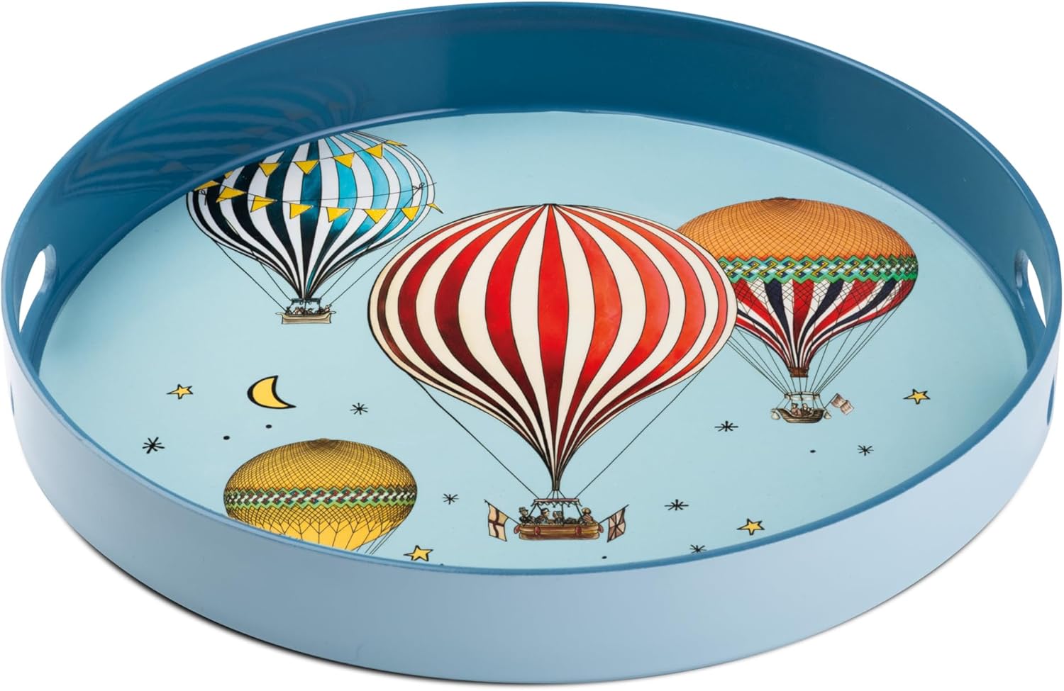 صينية تقديم مستديرة من إيغان جيراموندو 30 سم، صينية كبيرة مزخرفة بتصميم منطاد الهواء الساخن، مقابض جانبية وحافة مرتفعة، صينية قهوة وشاي ووجبات خفيفة وحلويات (أزرق فاتح، 30 سم)