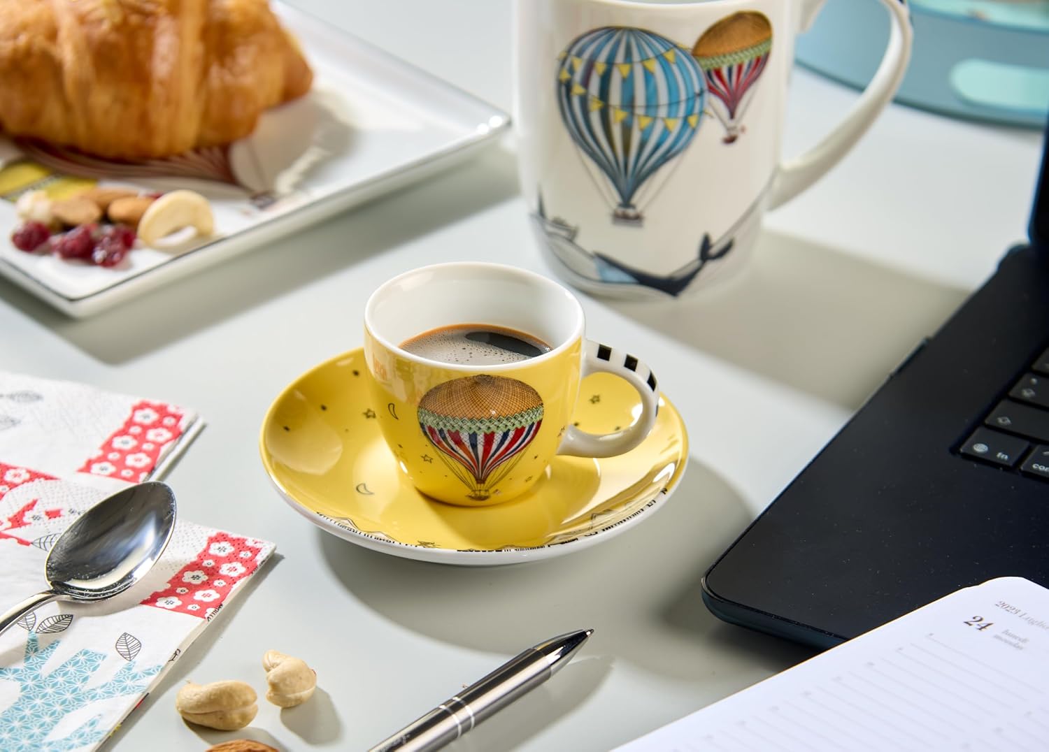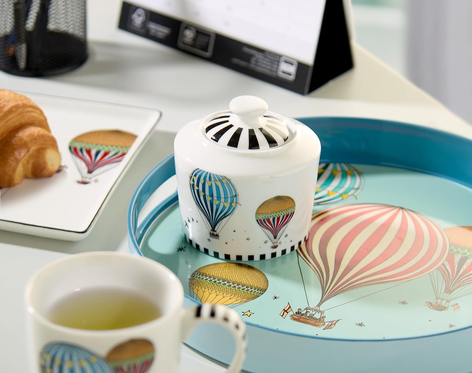 Bring a sense of travel and joy to your table with the EGAN GIRAMONDO Serving Plate (Ø 30.5 cm). Featuring the iconic hot-air balloon illustration and a stylish striped rim, this large serving plate adds an elegant Italian touch to both everyday meals and special occasions.